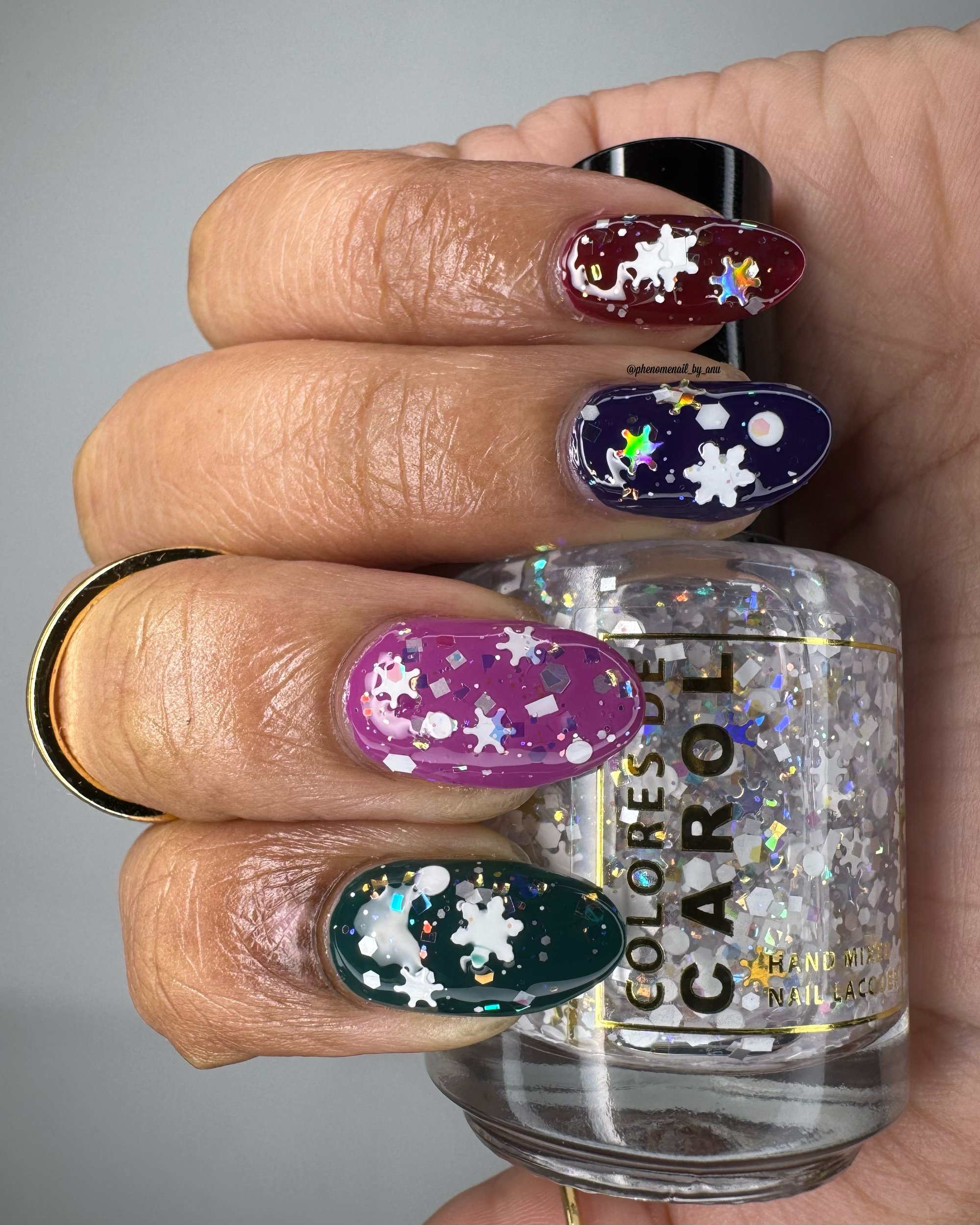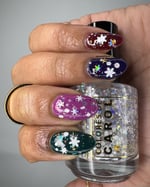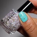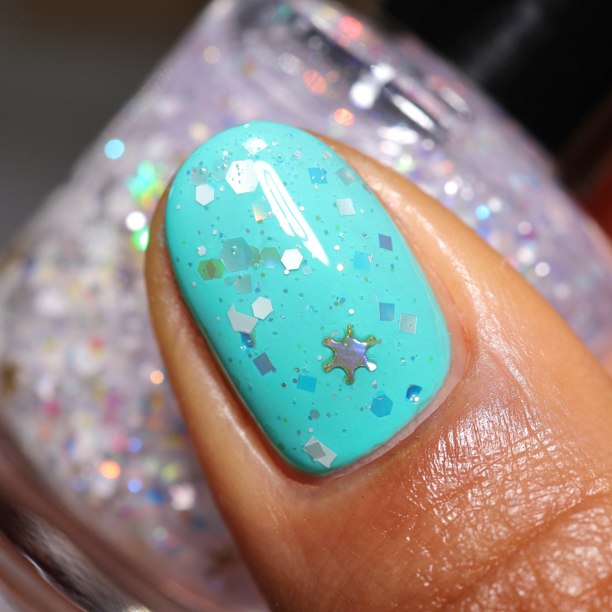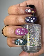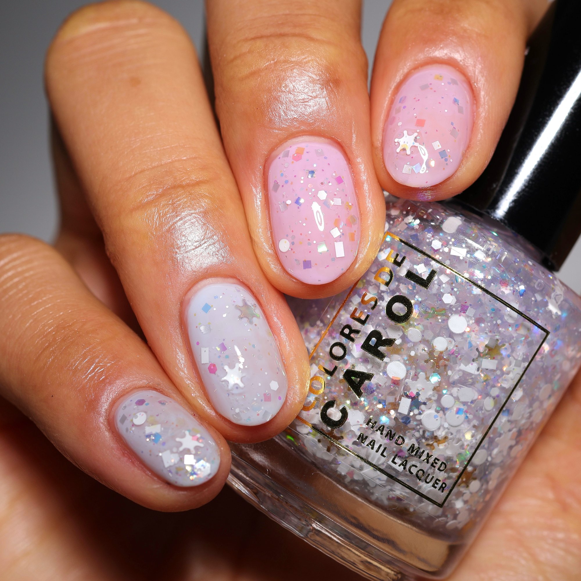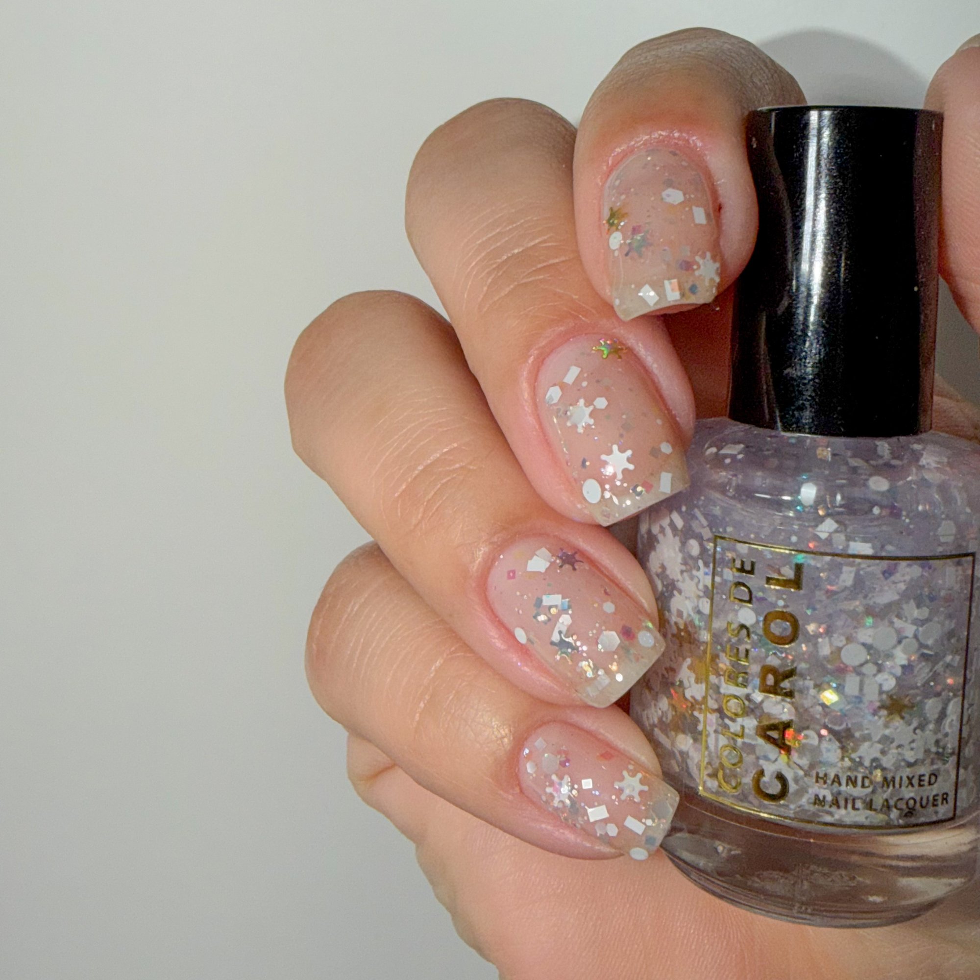 BALANCE - (topper) a clear base with white glitter in various shapes and sizes and iridescent chameleon glitter.