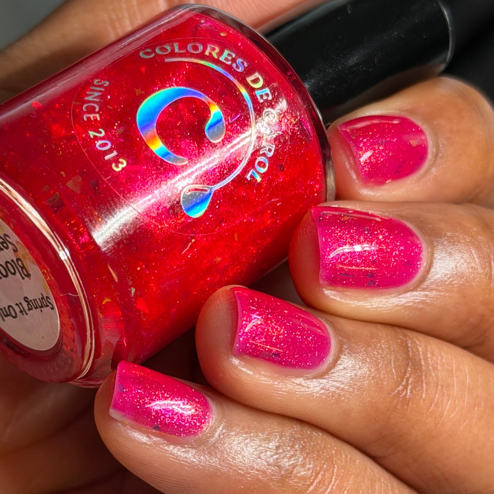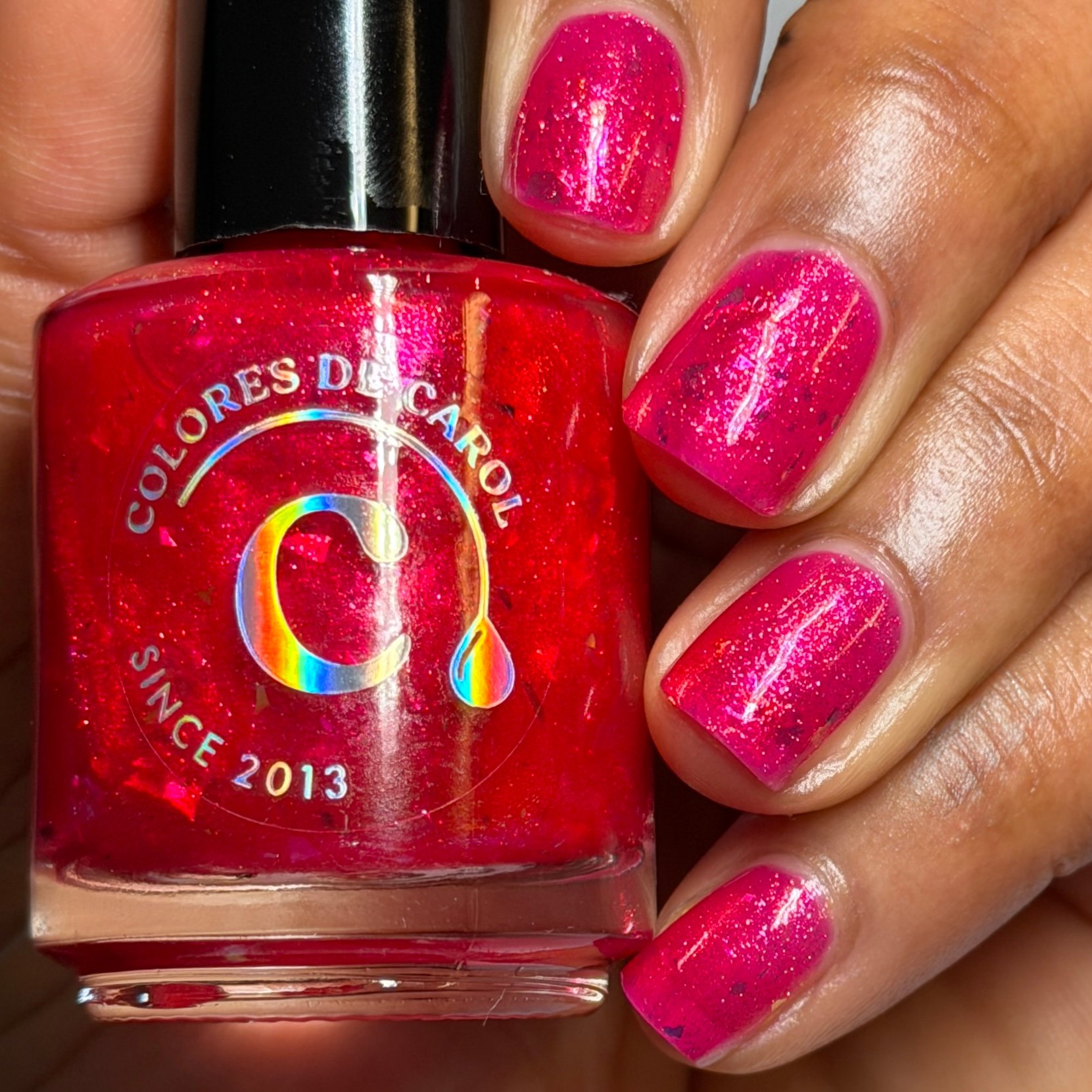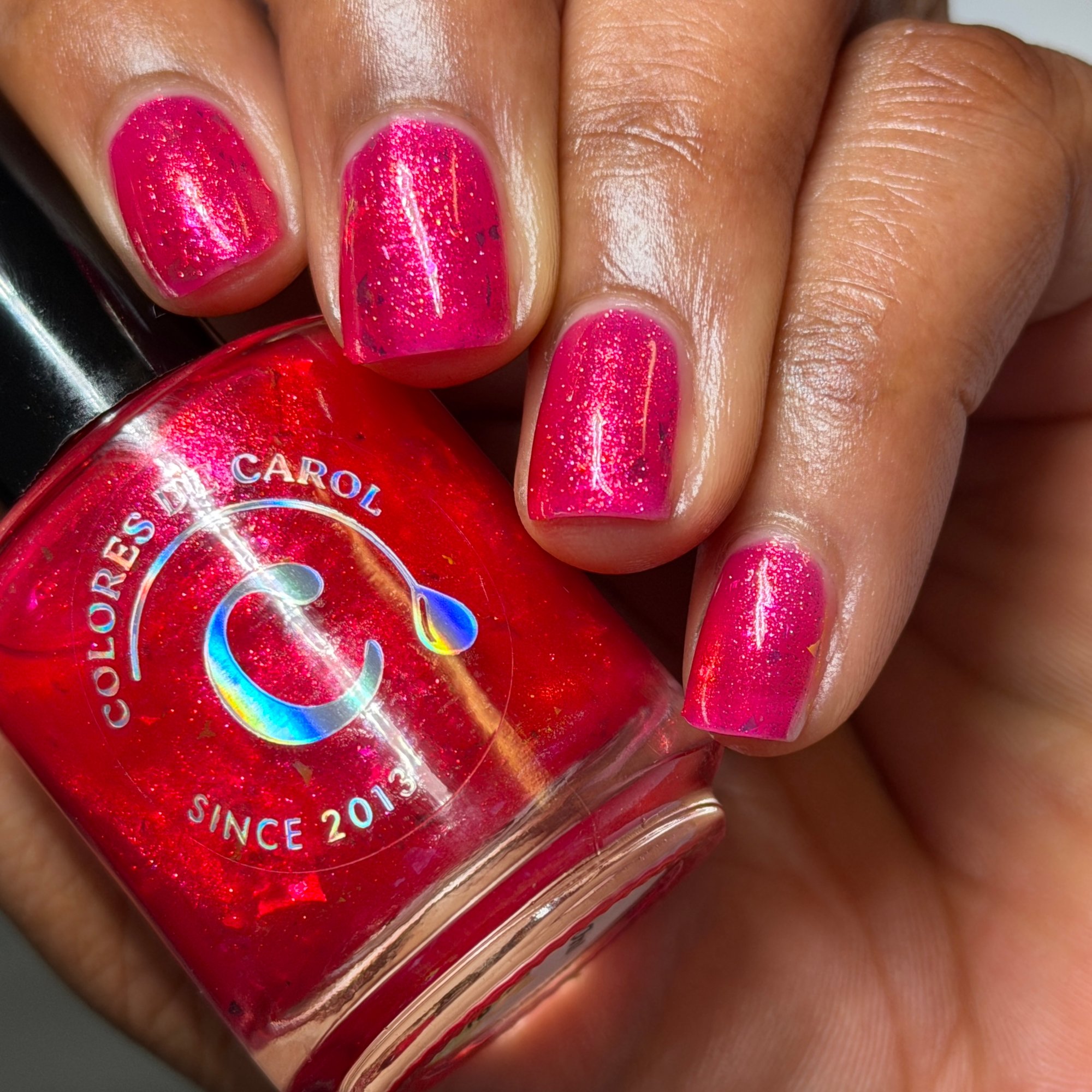 A vibrant hot reddish pink shimmer bursting with luminous sparkle and iridescent Mermaid flakes. Bold, playful, and impossible to ignore, this shade is ready to steal the spotlight like the brightest bloom in the garden.