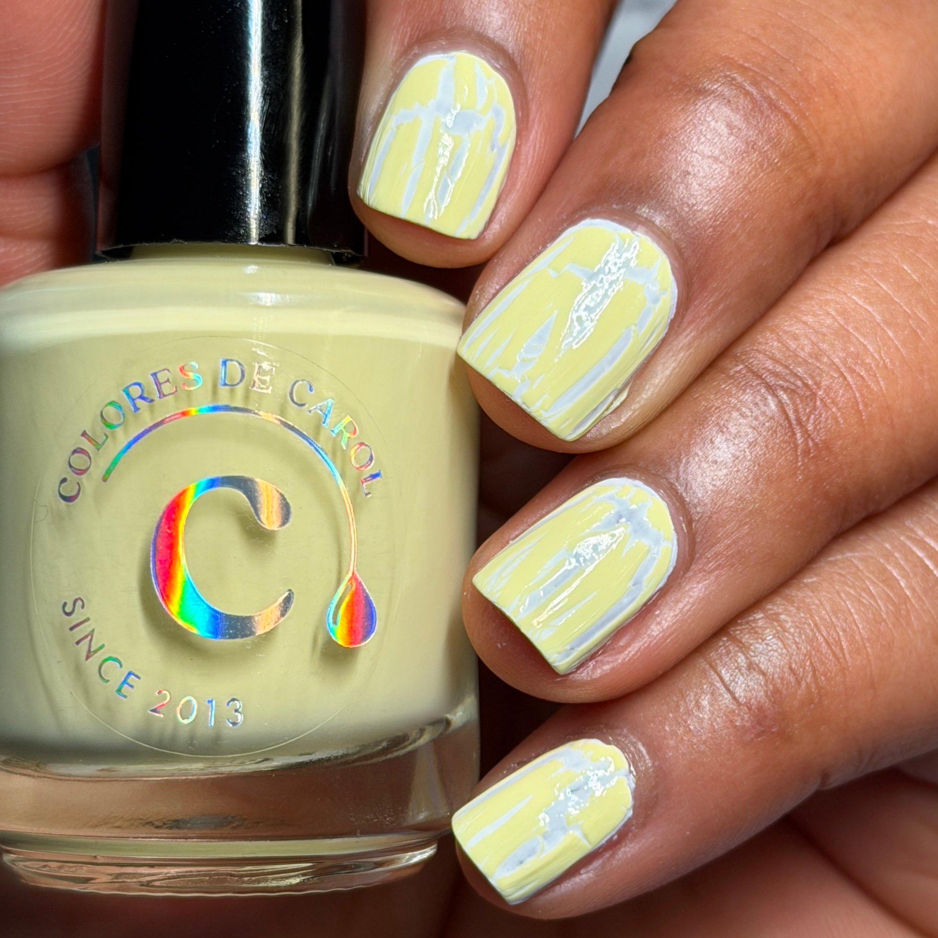 A cheerful pastel yellow crackle topper that fractures beautifully as it dries, revealing the color underneath like sunshine breaking through eggshells.