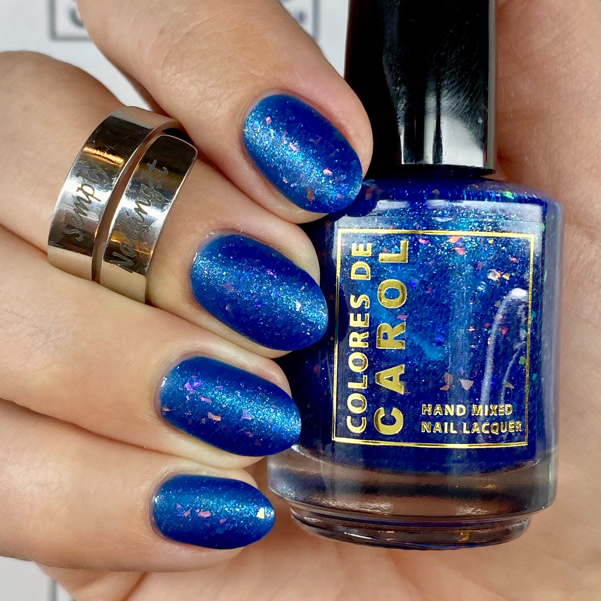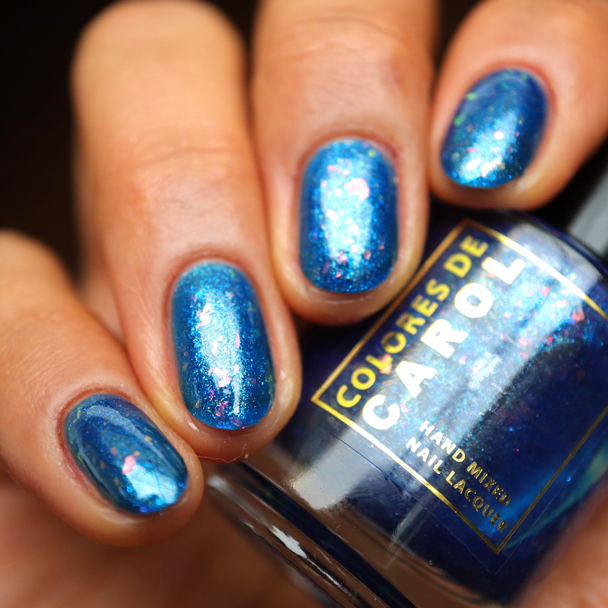 FROST-BITE THE DUST, a bright blue with blue/gold micro flakes, fairy flakes and mermaid flakes.