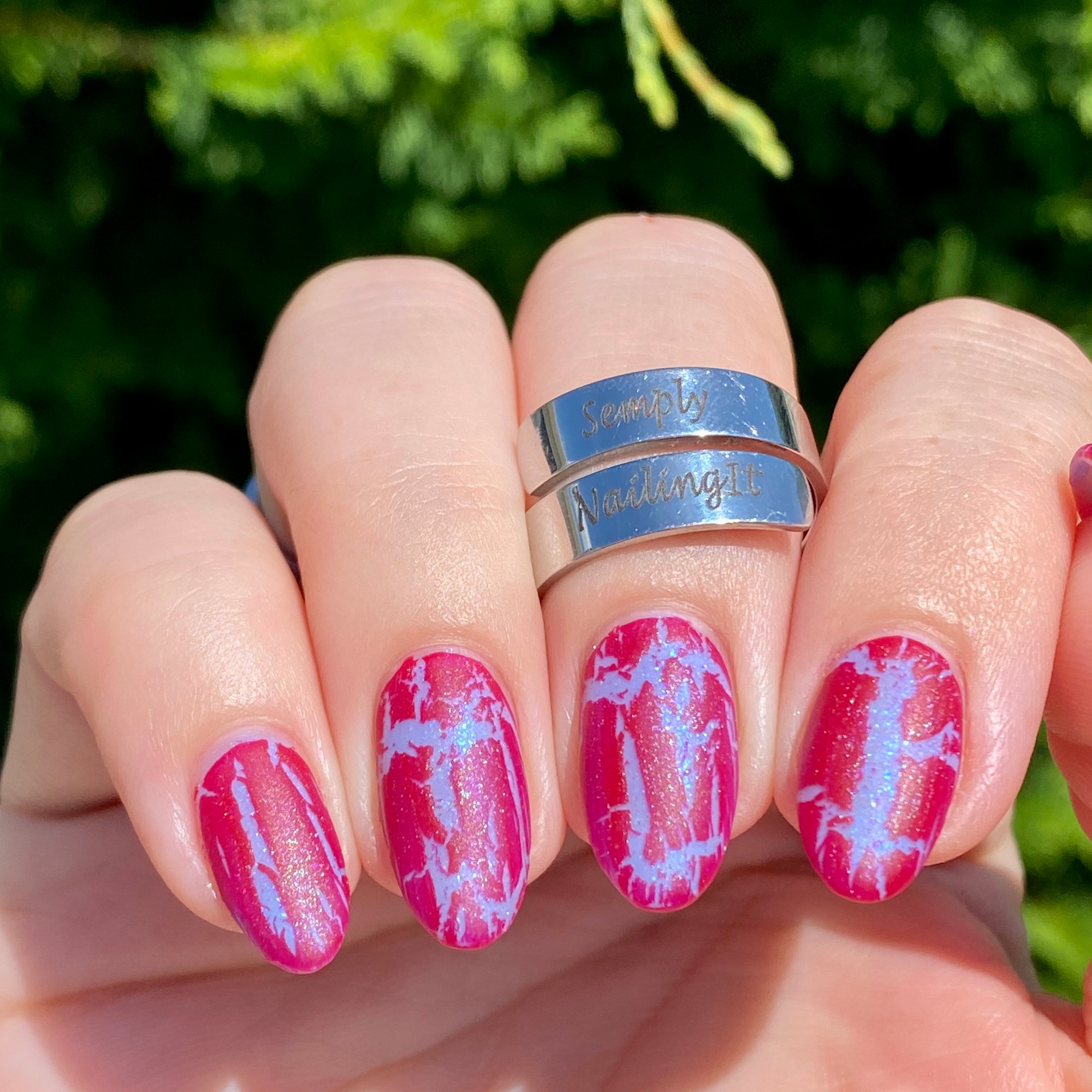 Navidazed, a red crackle topper with green/indigo/violet Aurora shimmer.